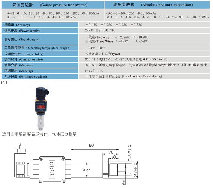 詳細(xì)信息 YD322-IB,帶顯示型壓力變送器
