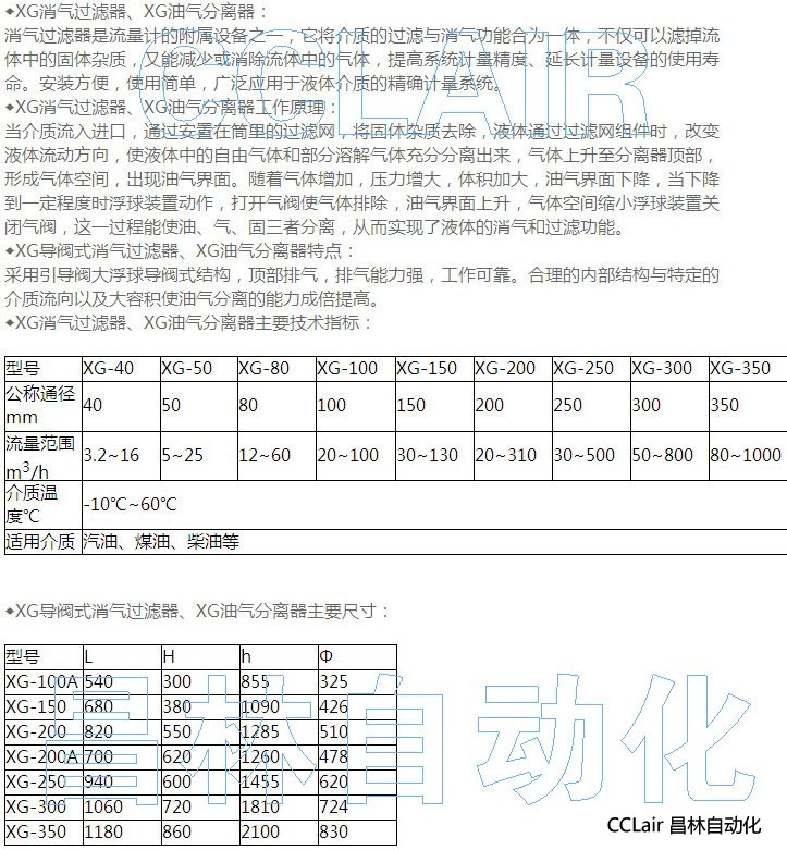 詳細信息 XG-40,XG-50,XG-80,XG-100,XG-150,XG-200,XG-250,XG-300,消氣過濾器