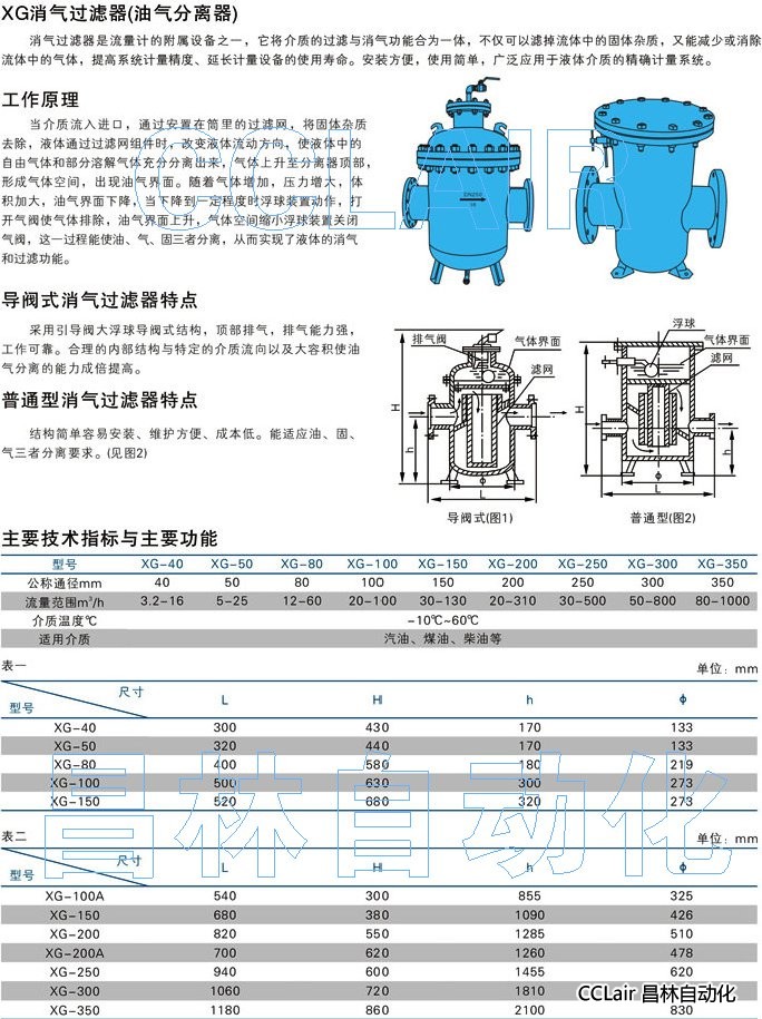 XG-40,XG-50,XG-80,XG-100,XG-150,XG-200,XG-250,XG-300,消氣過濾器