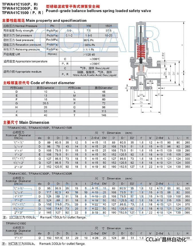 TFWA41C150P,TFWA41C300P,TFWA41C1500P,TFWA41C150R,波紋管平衡式彈簧安全閥