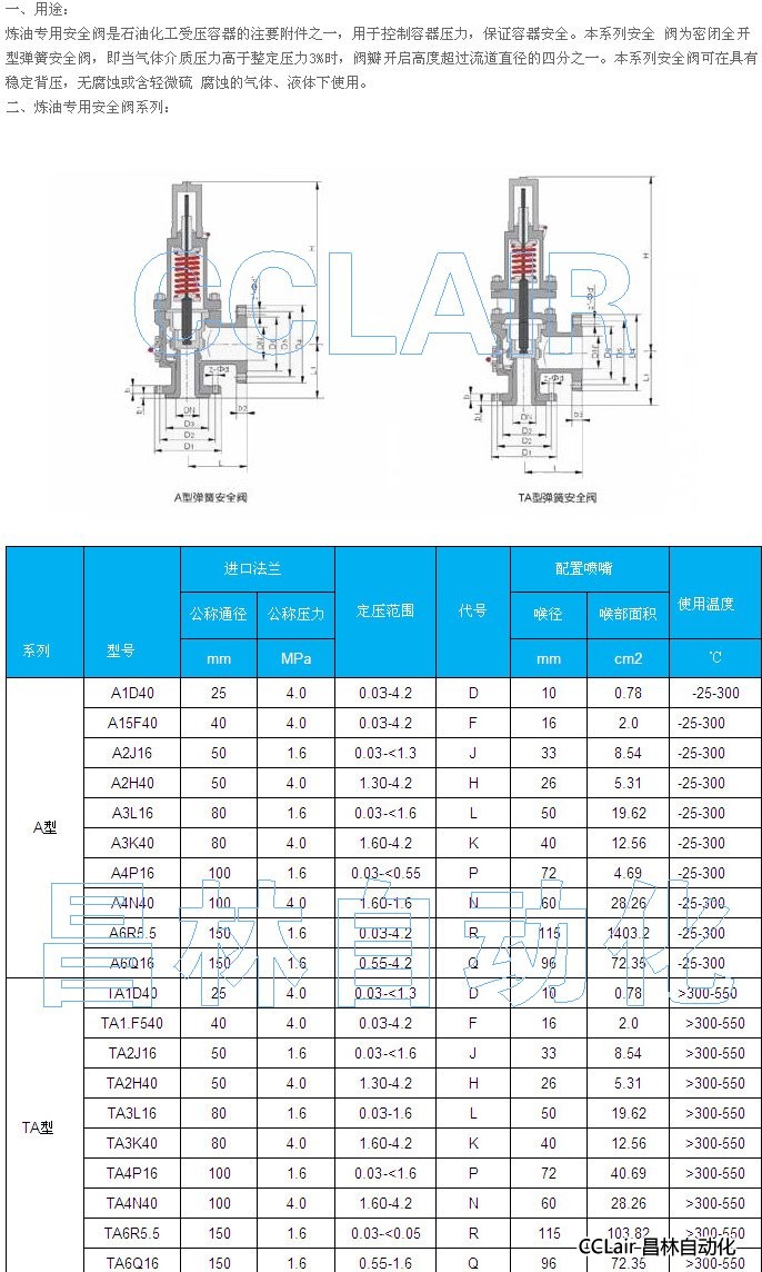 A1D40-DN25,A15F40-DN40,A2J16-DN50,TA1D40-DN25,TA15F40-DN40,煉油專用安全閥