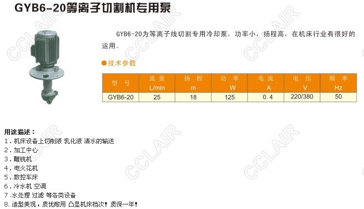 詳細(xì)信息 GYB6-20,等離子切割機(jī)專(zhuān)用冷卻泵