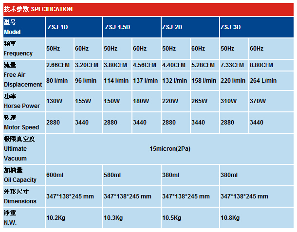 ZSJ-1D,ZSJ-1.5D,ZSJ-2D,ZSJ-3D,雙級經濟型真空泵