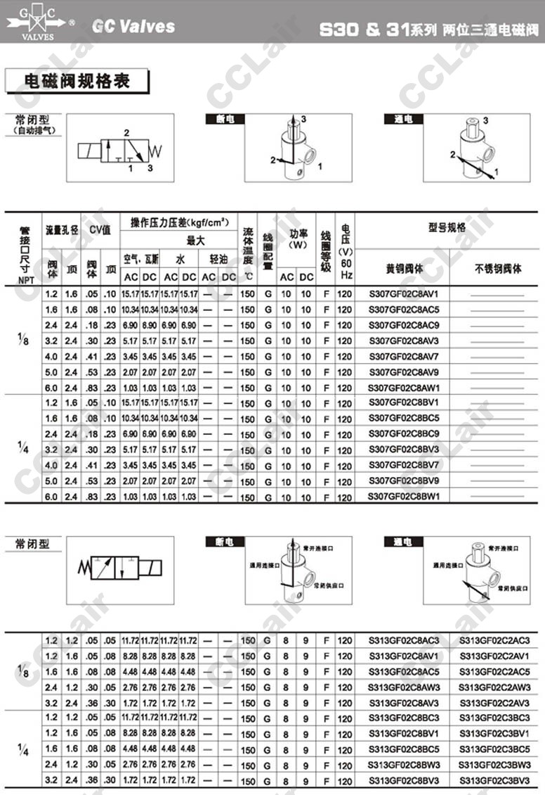 S313GF02C2AC5,S313GF02C2AW3,S313GF02C2AV3,GC Valves S313GF02C2BC3,S313GF02C2BV1,S313GF02C2BC5,