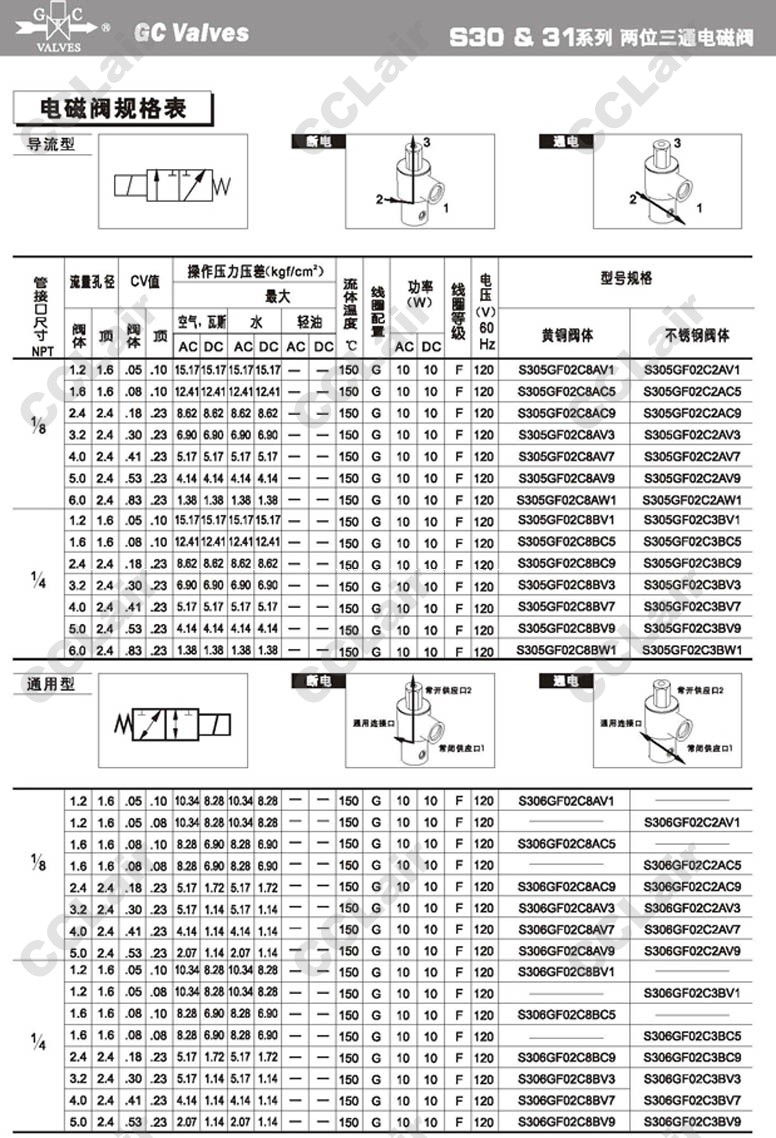 S303GF02C2AV7,S303GF02C2AV9,S303GF02C2AW1,GC Valves S303GF02C2BV1,S303GF02C2BC5,S303GF02C2BC9,