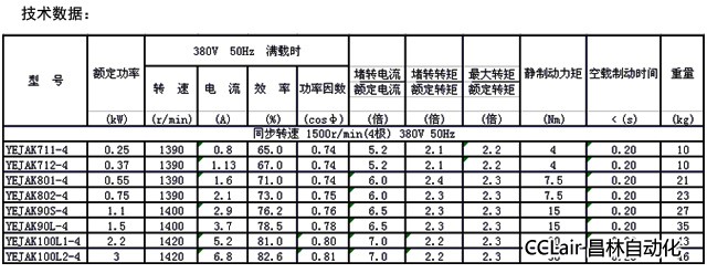 2、額定電壓380V 50Hz(交流制動器與電動機相同);