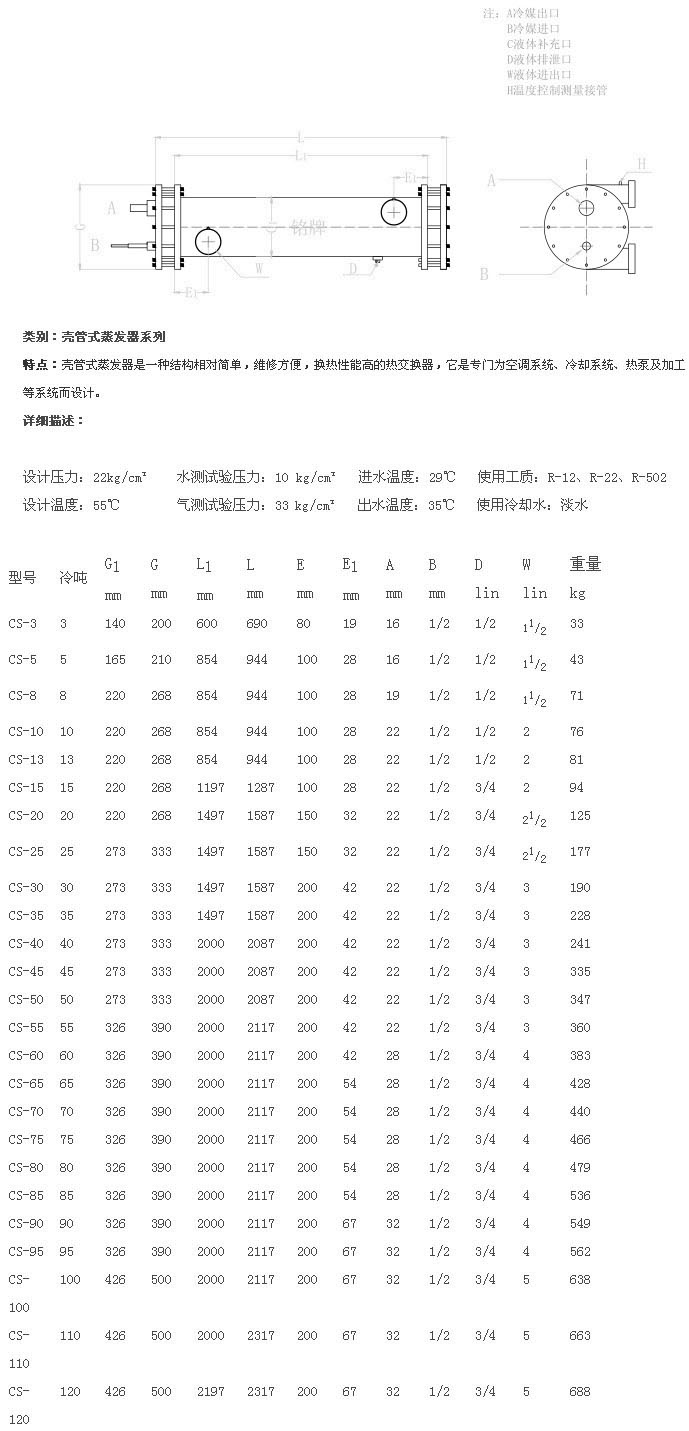 詳細(xì)信息 CS-3,CS-5,CS-8,CS-10,CS-13,CS-15,CS-20,CS-25,CS-30,CS-35,單回路蒸發(fā)器