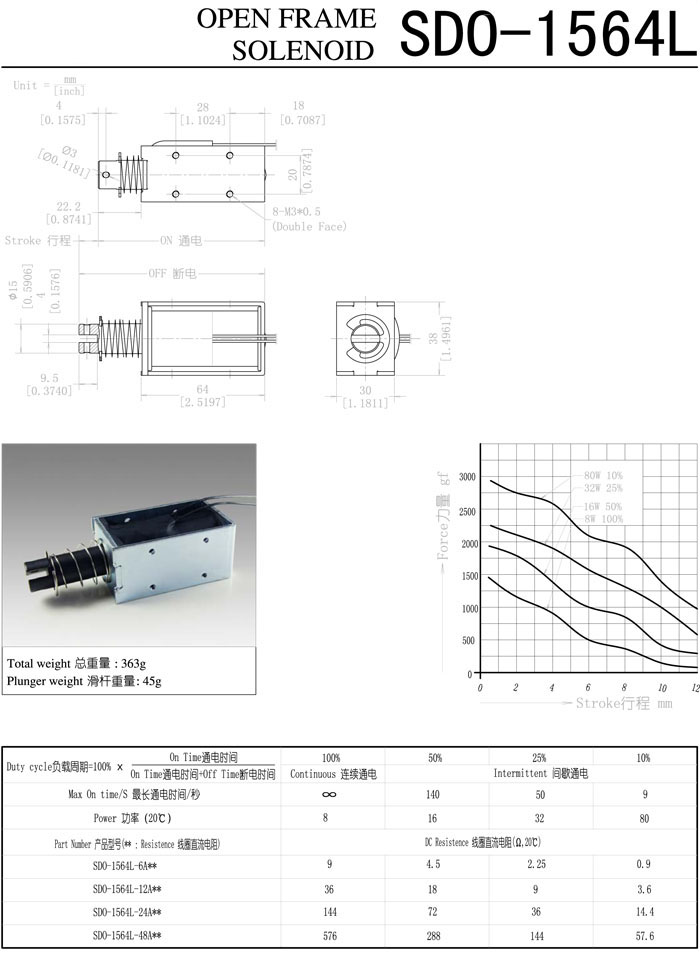 詳細(xì)信息 SDO-1564L-6A,SDO-1564L-12A,SDO-1564L-24A,SDO-1564L-48A,直動(dòng)電磁鐵