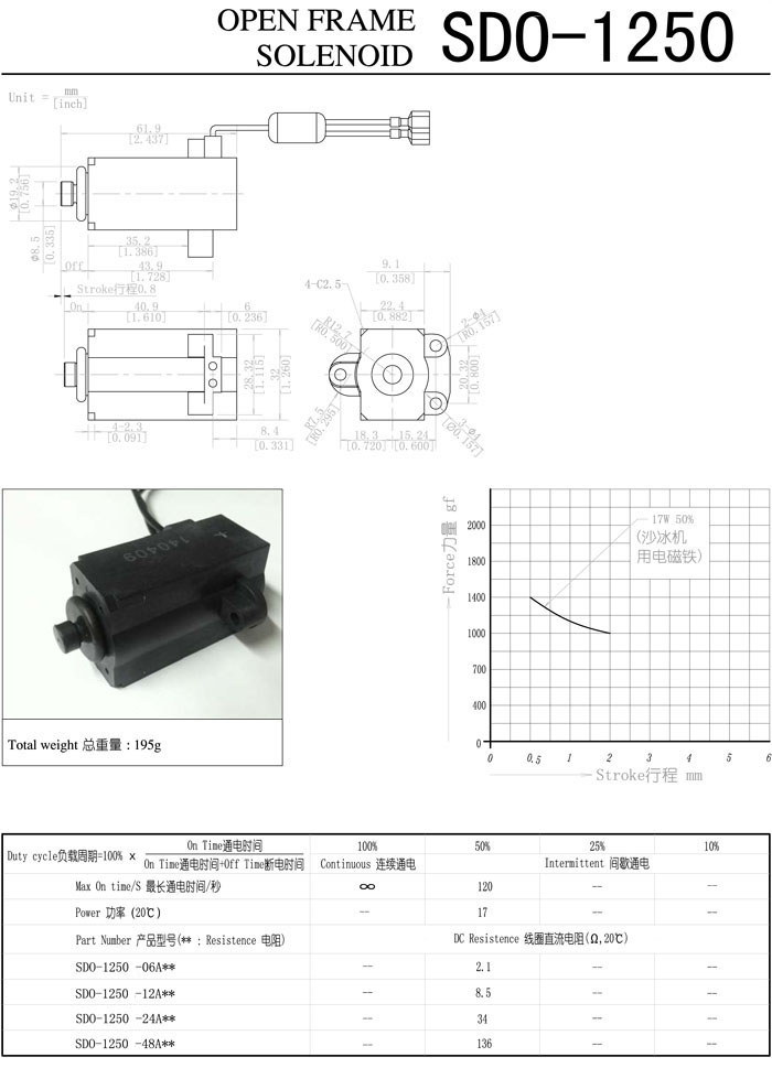 SDO-1250-06A,SDO-1250-12A,SDO-1250-24A,SDO-1250-48A,直動電磁鐵