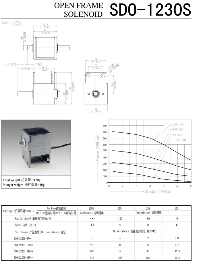 詳細(xì)信息 SDO-1230S-6A,SDO-1230S-12A,SDO-1230S-24A,SDO-1230S-48A,直動電磁鐵
