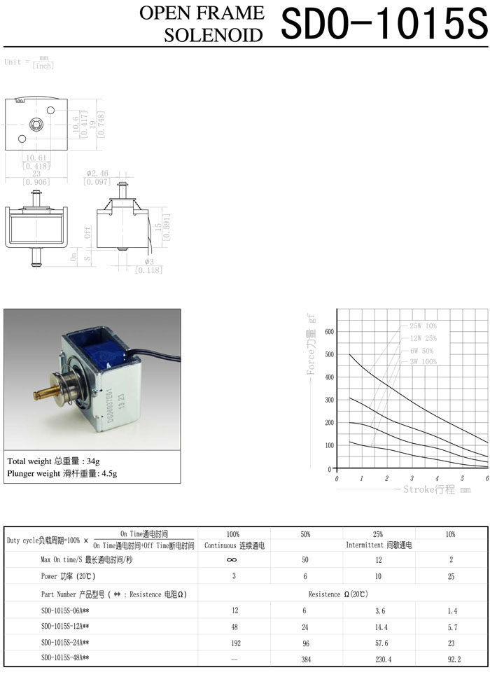 詳細(xì)信息 SDO-1015S-06A,SDO-1015S-12A,SDO-1015S-24A,SDO-1015S-48A,直動電磁鐵