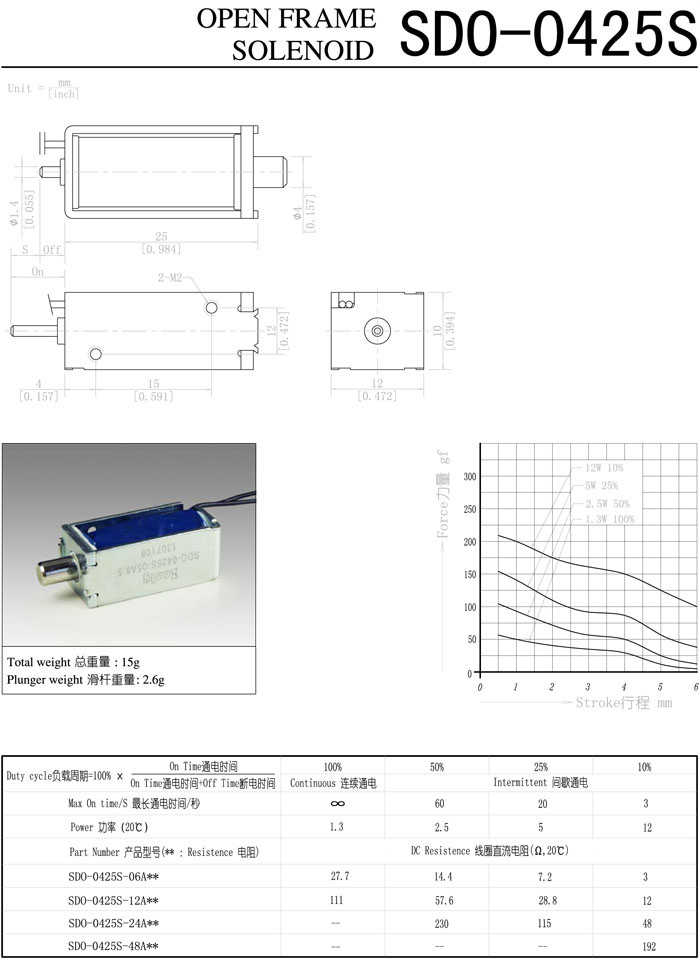 詳細信息 SDO-0425S-06A,SDO-0425S-12A,SDO-0425S-24A,SDO-0425S-48A,直動電磁鐵