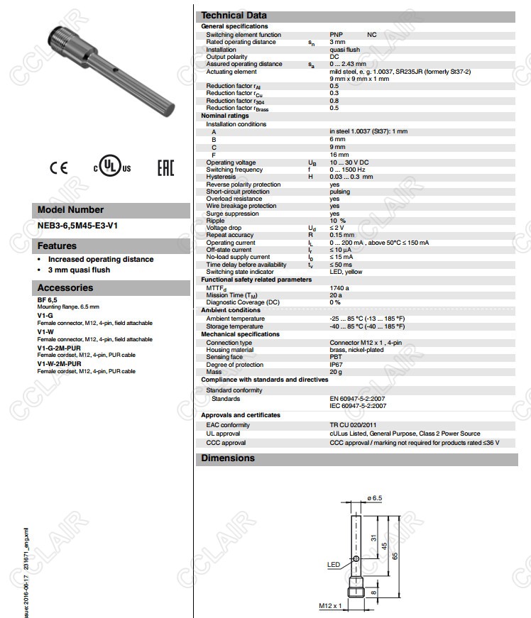 NEB3-6,5M45-E3-V1,電感式接近開關