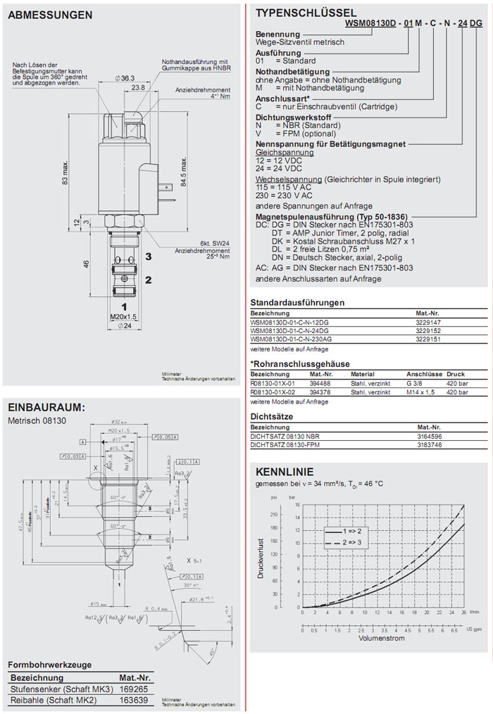 WSM08130D-01-C-N-12DG,WSM08130D-01-C-N-24DG,WSM08130D-01-C-N-230AG,HYDAC二位三通方向提升閥 |