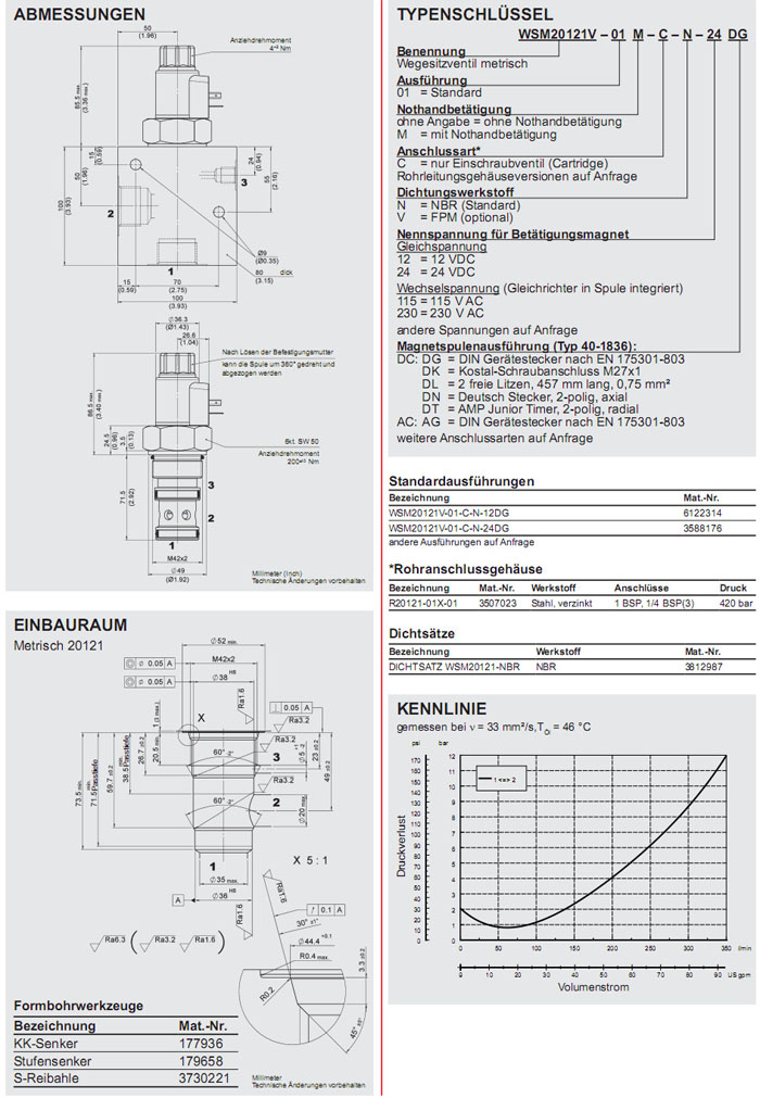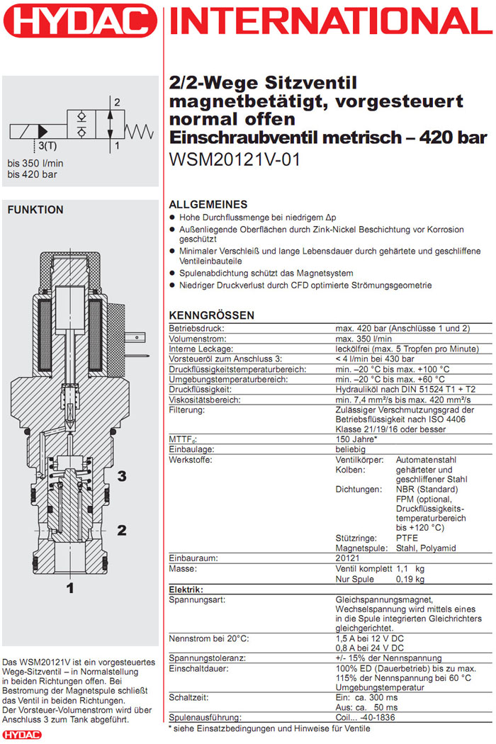 WSM20121V-01-C-N-12DG,WSM20121V-01-C-N-24DG,HYDAC電磁2/2方向座閥