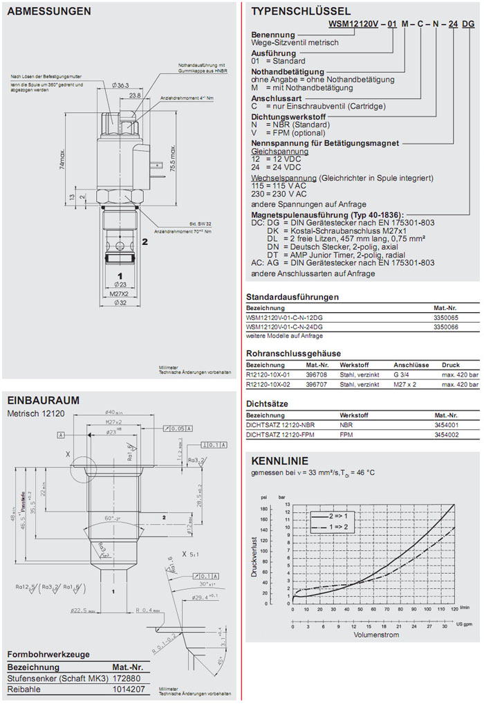 WSM12120V-01-C-N-12DG,WSM12120V-01-C-N-24DG,HYDAC電磁2/2方向座閥