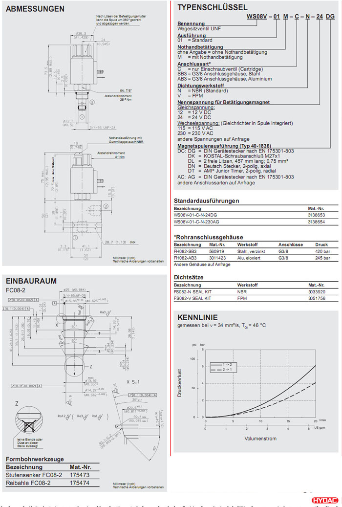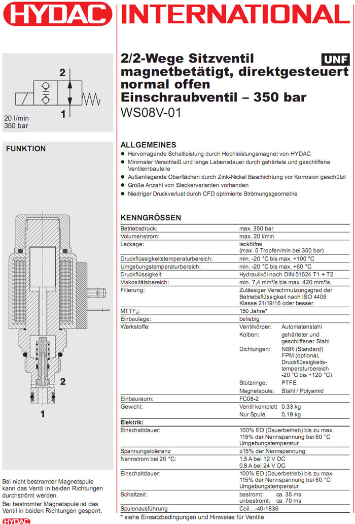 WS08V-01-C-N-24DG,WS08V-01-C-N-230AG,HYDAC電磁2/2方向座閥