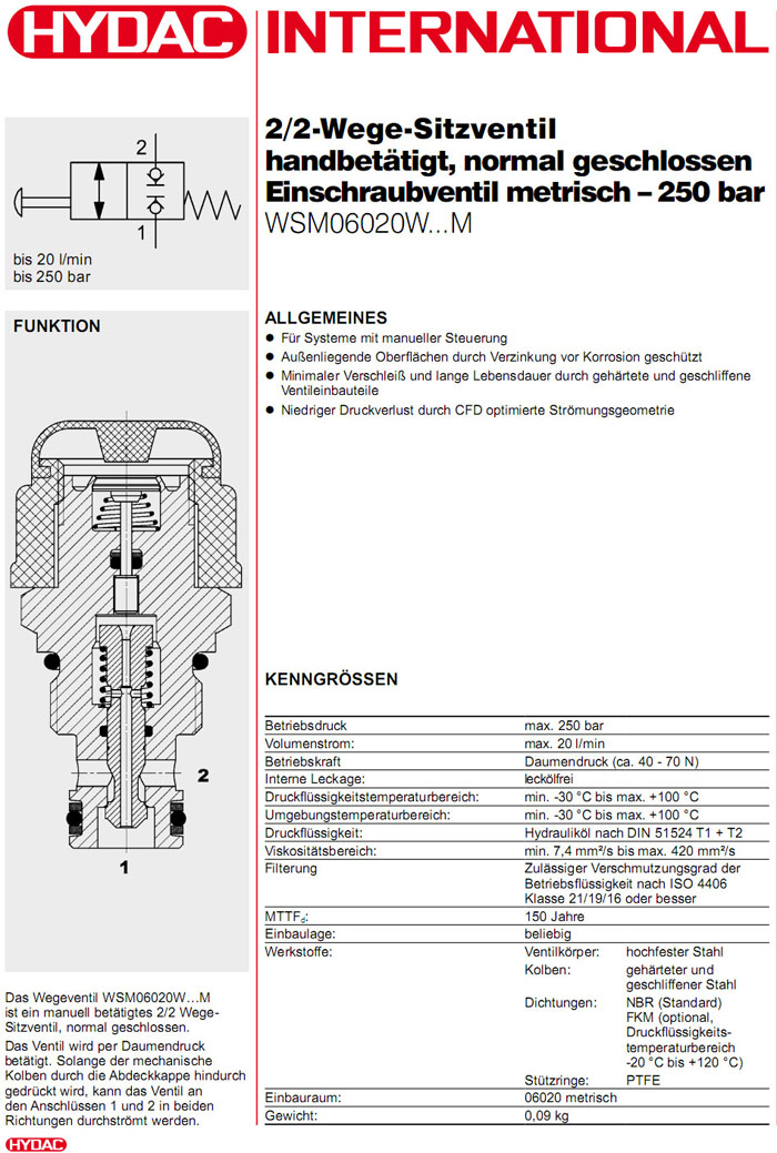 WSM06020W-01-C-N-M,HYDAC電磁2/2方向座閥