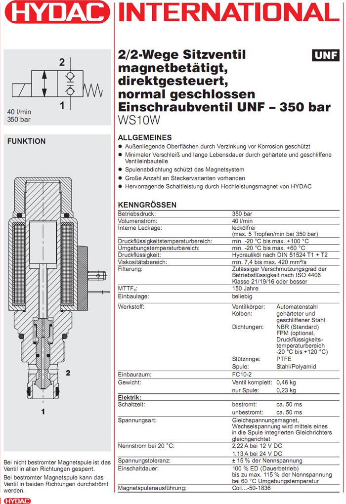 WS10W-01-C-N-12DG,WS10W-01-C-N-24DG,WS10W-01-C-N-230DG,HYDAC電磁2/2方向座閥 |