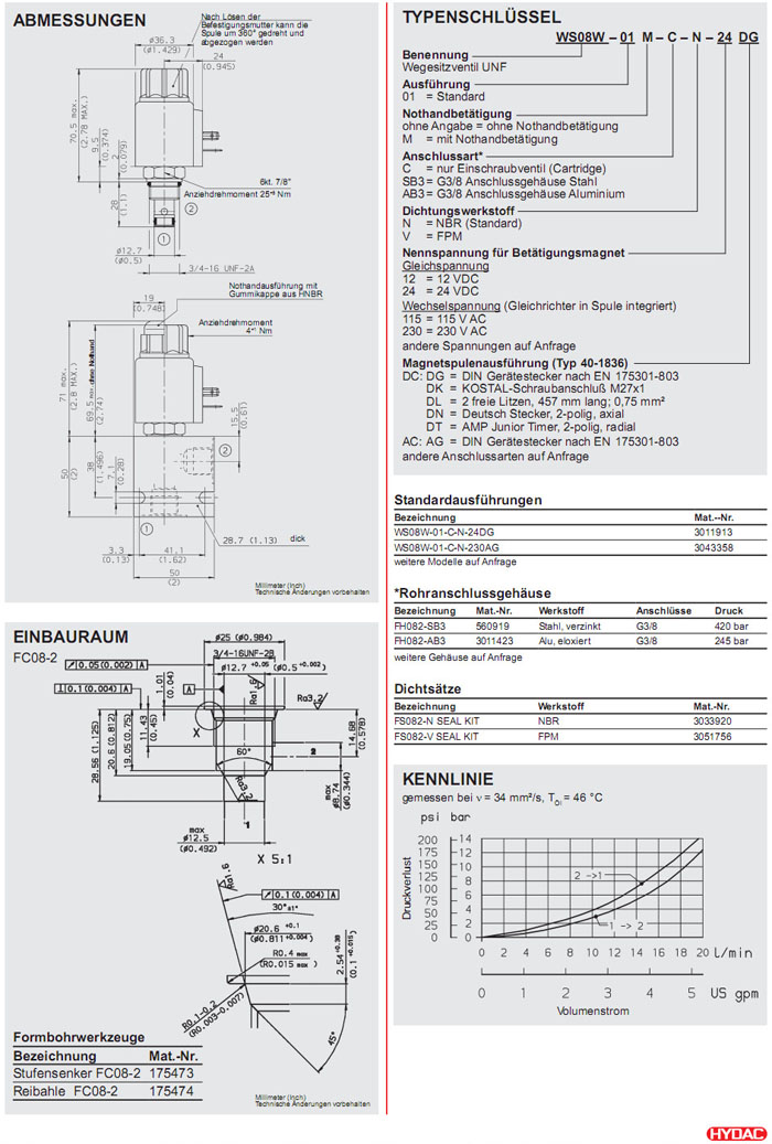 WS08W-01-C-N-24DG,WS08W-01-C-N-230AG,HYDAC電磁2/2方向座閥