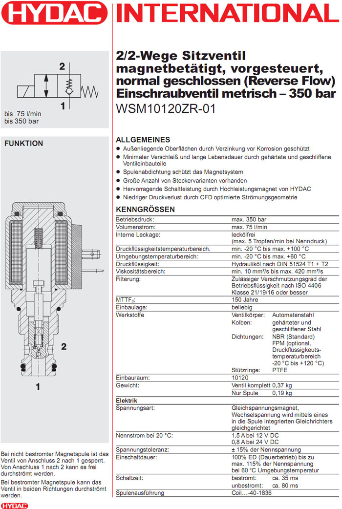 WSM10120YR-01-C-N-24DG,WSM10120YR-01-C-N-230AG,HYDAC電磁2/2方向座閥