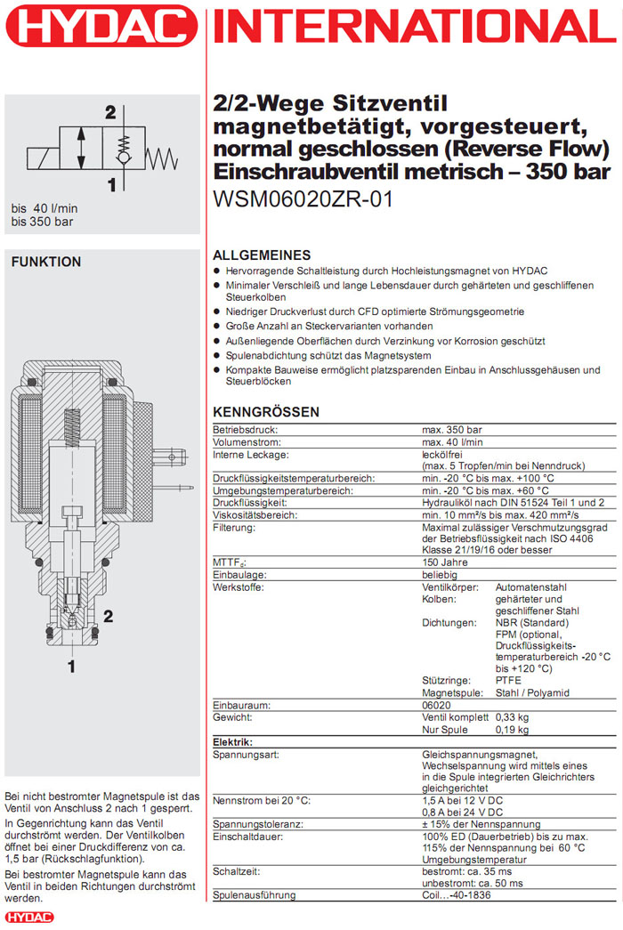 WSM06020ZR-01-C-N-24DG,WSM06020ZR-01-C-N-230AG,HYDAC電磁2/2方向座閥