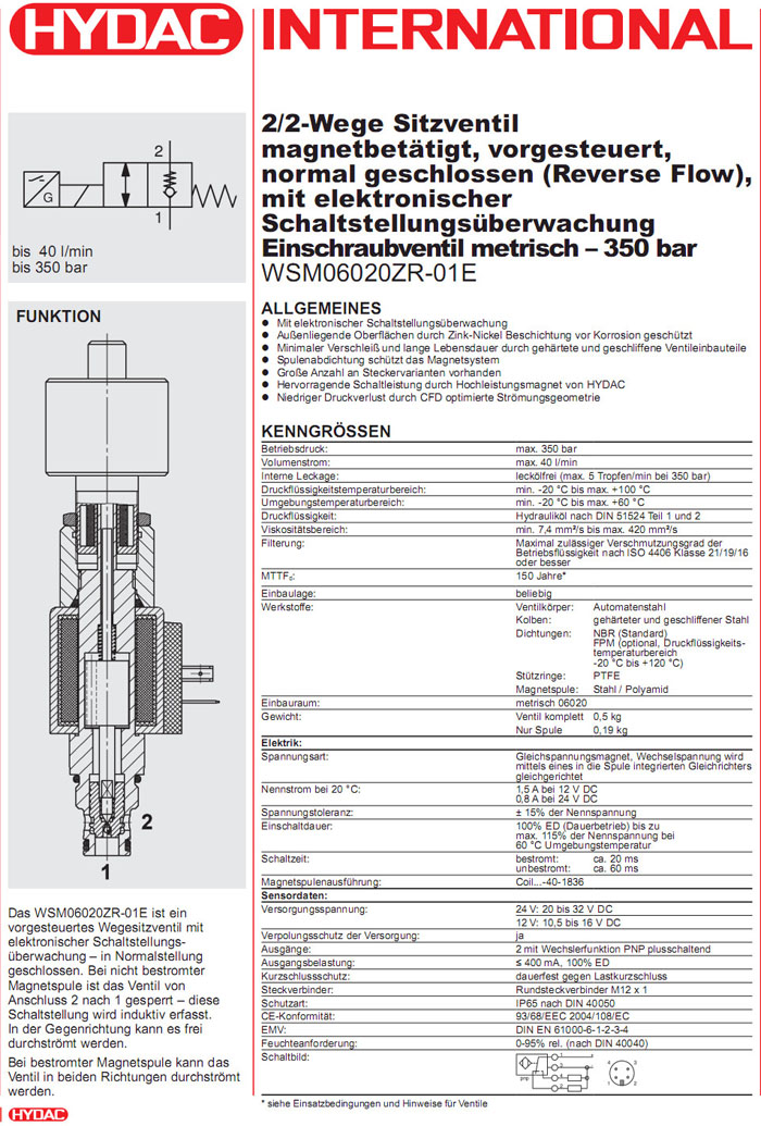 WSM06020ZR-01E-C-N-12DG,WSM06020ZR-01E-C-N-24DG,HYDAC電磁2/2方向座閥