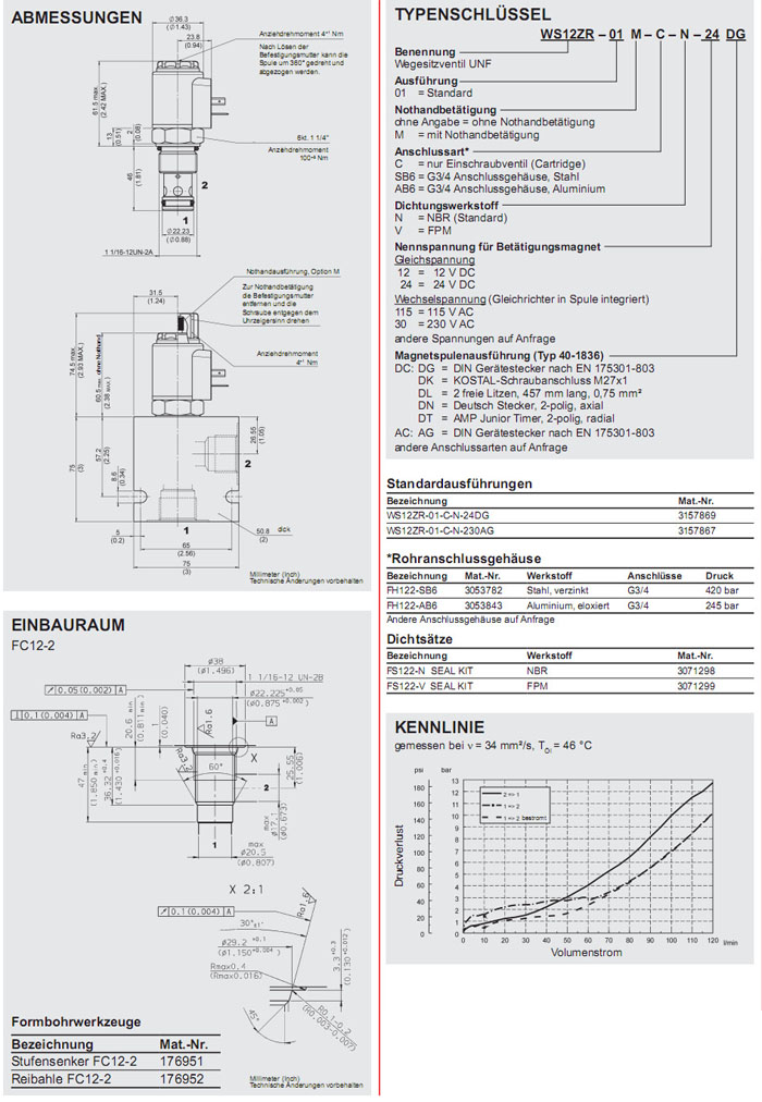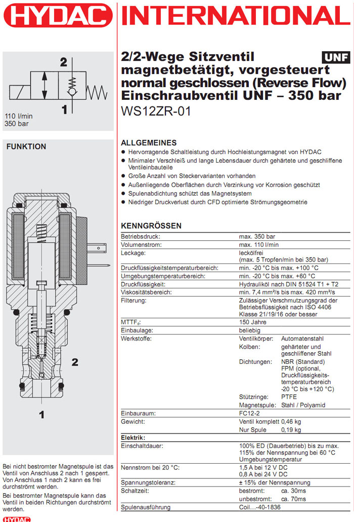 WS12ZR-01-C-N-24DG,WS12ZR-01-C-N-230AG,HYDAC電磁2/2方向座閥