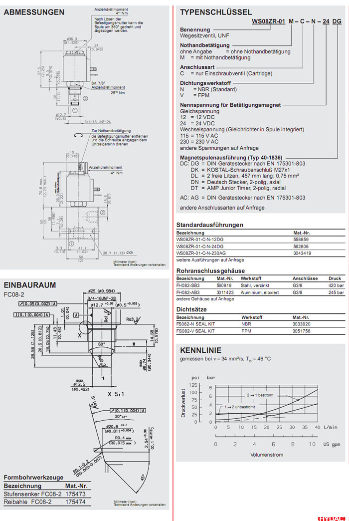 WS08ZR-01-C-N-12DG,WS08ZR-01-C-N-24DG,WS08ZR-01-C-N-230AG,HYDAC電磁2/2方向座閥