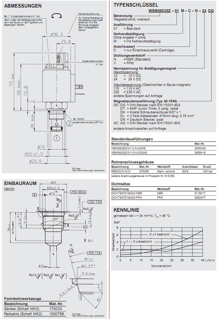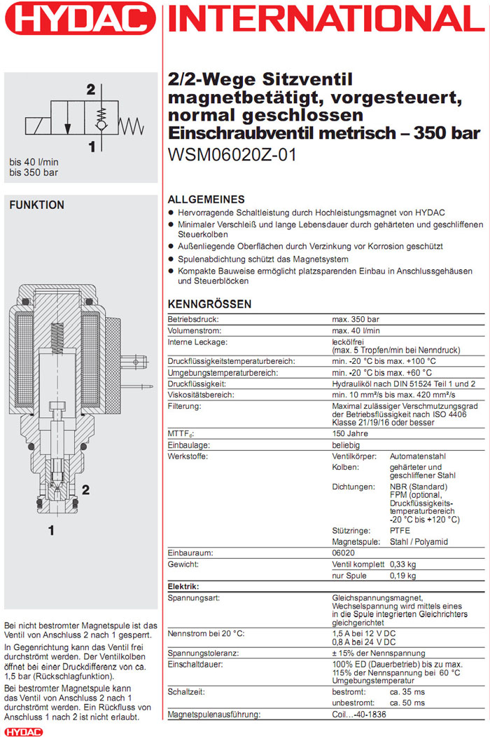 WSM06020Z-01-C-N-24DG,WSM06020Z-01-C-N-230AG,HYDAC電磁2/2方向座閥