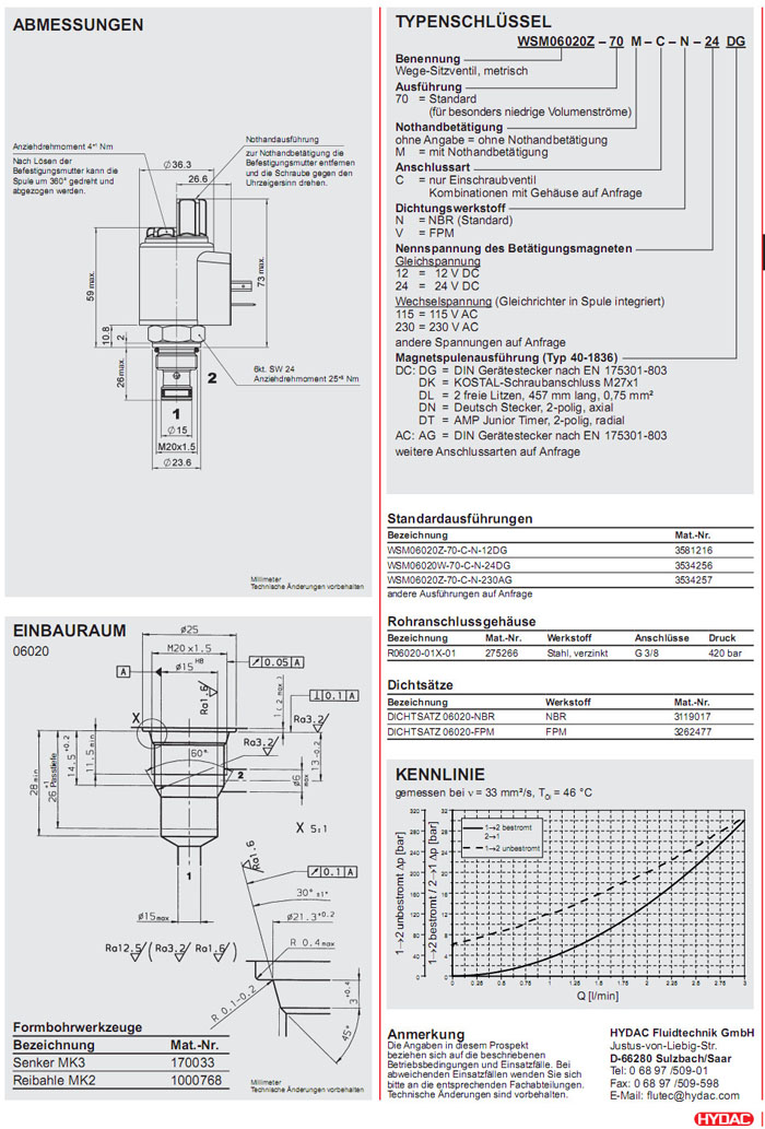 WSM06020Z-70-C-N-12DG,WSM06020W-70-C-N-24DG,WSM06020Z-70-C-N-230AG,HYDAC電磁2/2方向座閥 |