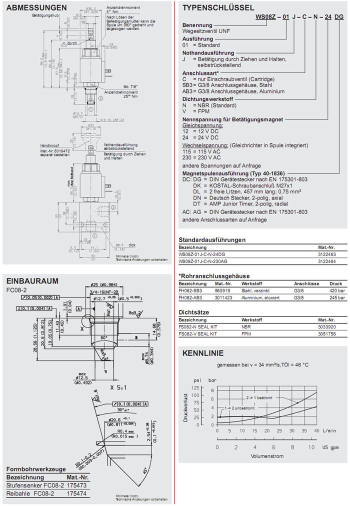 WS08Z-01J-C-N-24DG,WS08Z-01J-C-N-230AG,HYDAC電磁2/2方向座閥