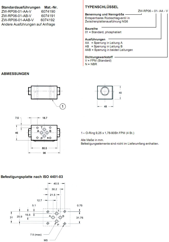 ZW-RP06-01-AA-V,ZW-RP06-01-AB-V,ZW-RP06-01-AAB-V,HYDAC止回閥