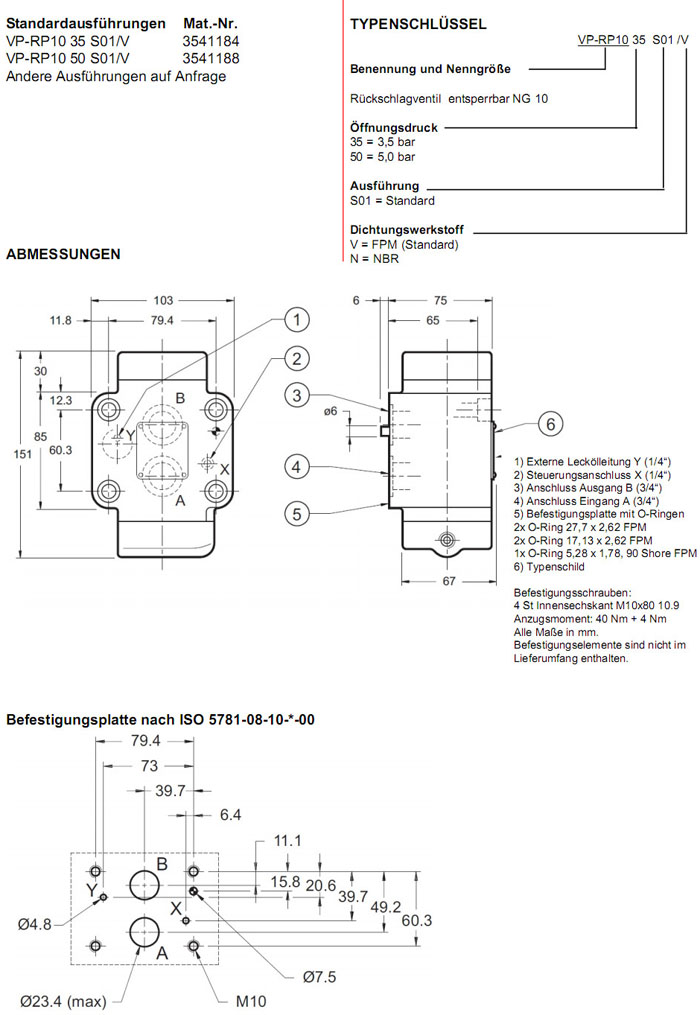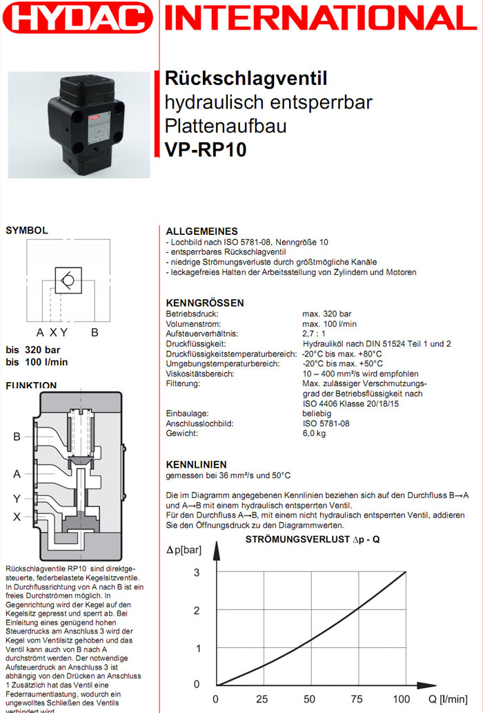 VP-RP10 35 S01/V,VP-RP10 50 S01/V,HYDAC止回閥