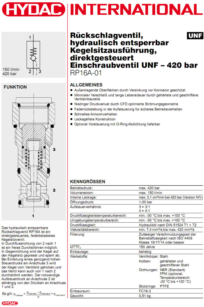 RP16A-01-C-N-15-3,RP16A-01-C-N-15-4,RP16A-01-C-NS-15-3,RP16A-01-C-NS-15-4,HYDAC止回閥