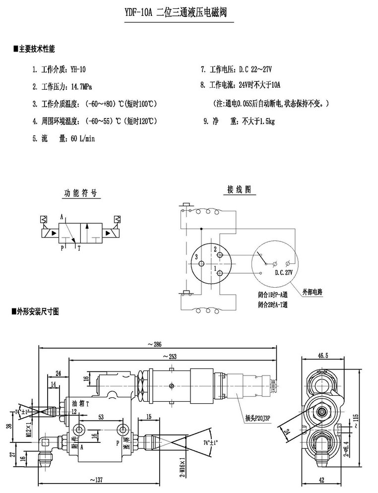 YDF-10A,二位三通液壓電磁閥