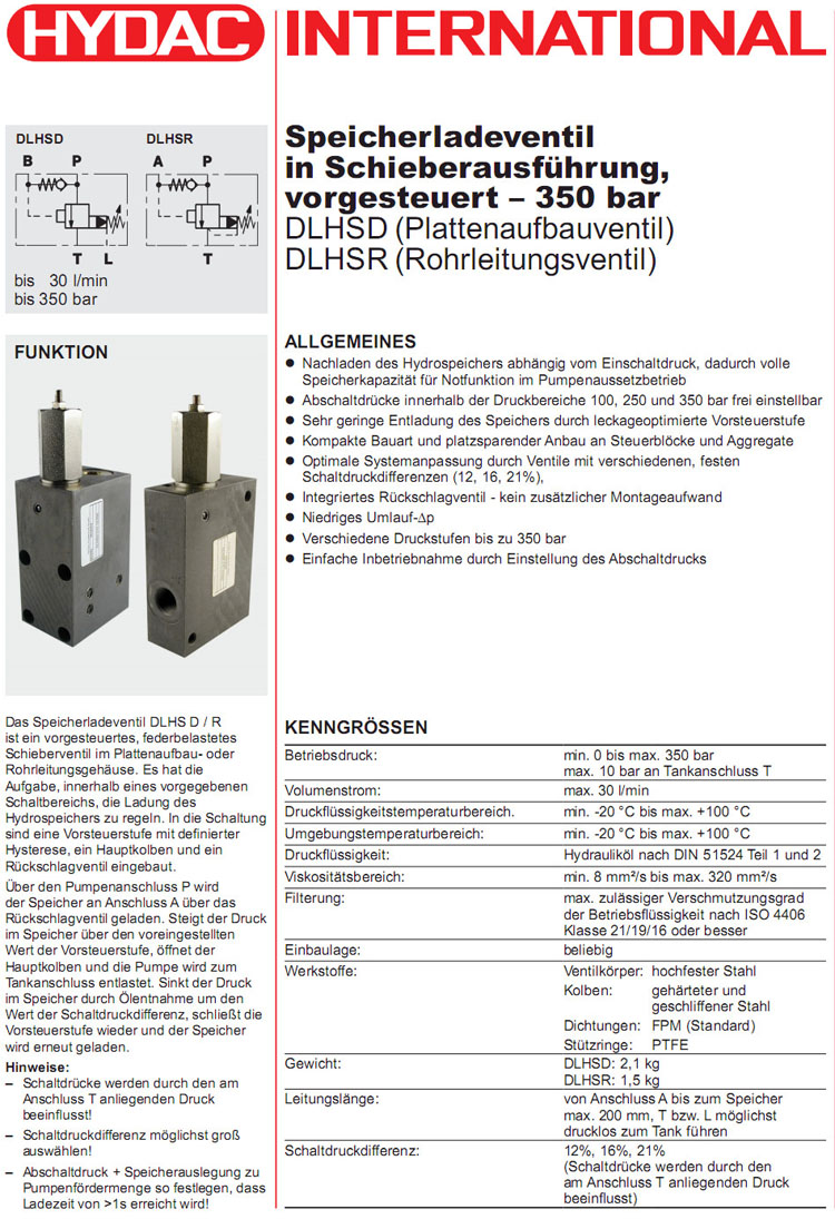 DLHSD-01X,DLHSR-01X,DLHSD-01X-12/100,DLHSR-01X-21/250,DLHSR-01X-12/250,HYDAC蓄能器充電閥 |