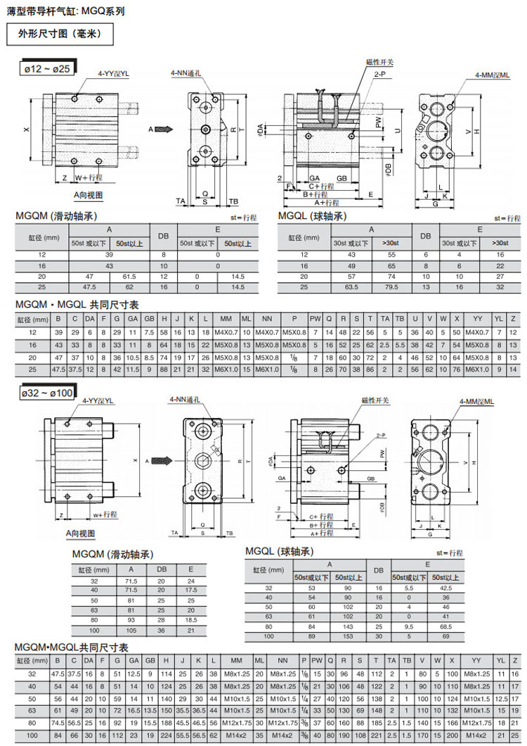 MGQL100-25,MGQL100-50,MGQL100-75,MGQL100-100,MGQL100-125,MGQL100-150,MGQL100-175,MGQL100-200,