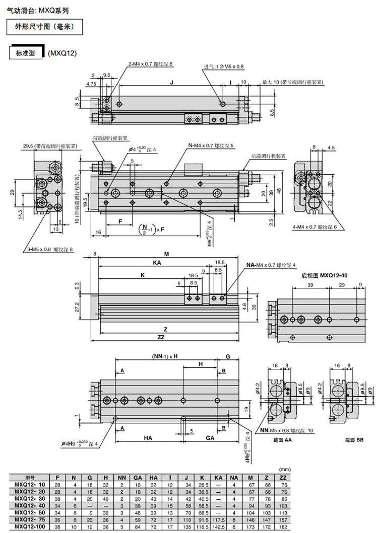 MXQ6-10,MXQ8-10,MXQ12-10,MXQ16-10,MXQ20-10,MXQ25-10,MXQ6-20,SMC氣動(dòng)滑臺(tái)氣缸