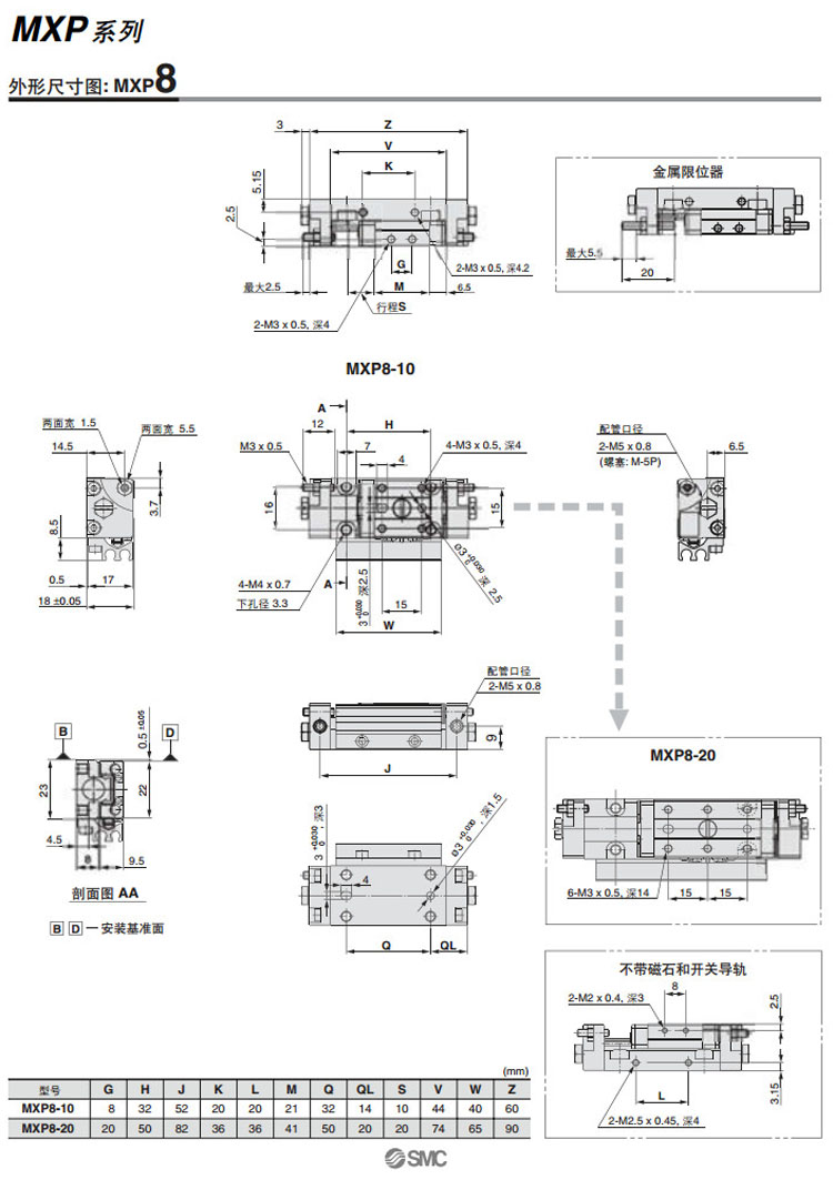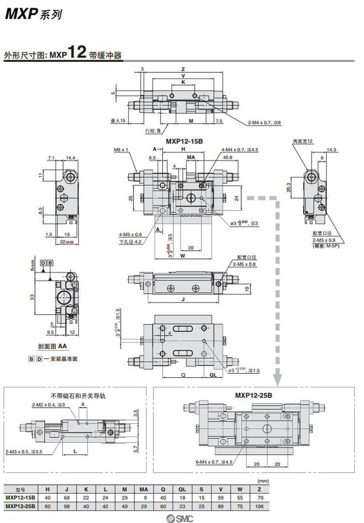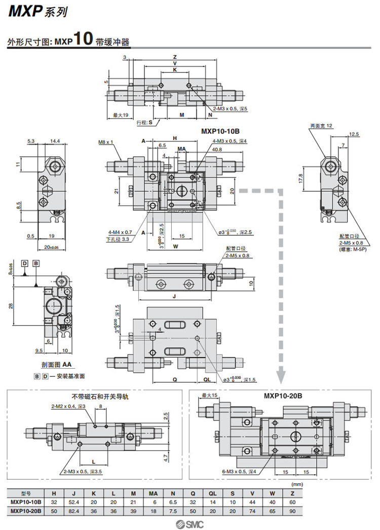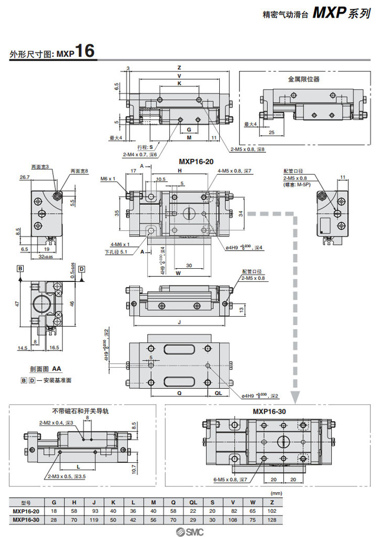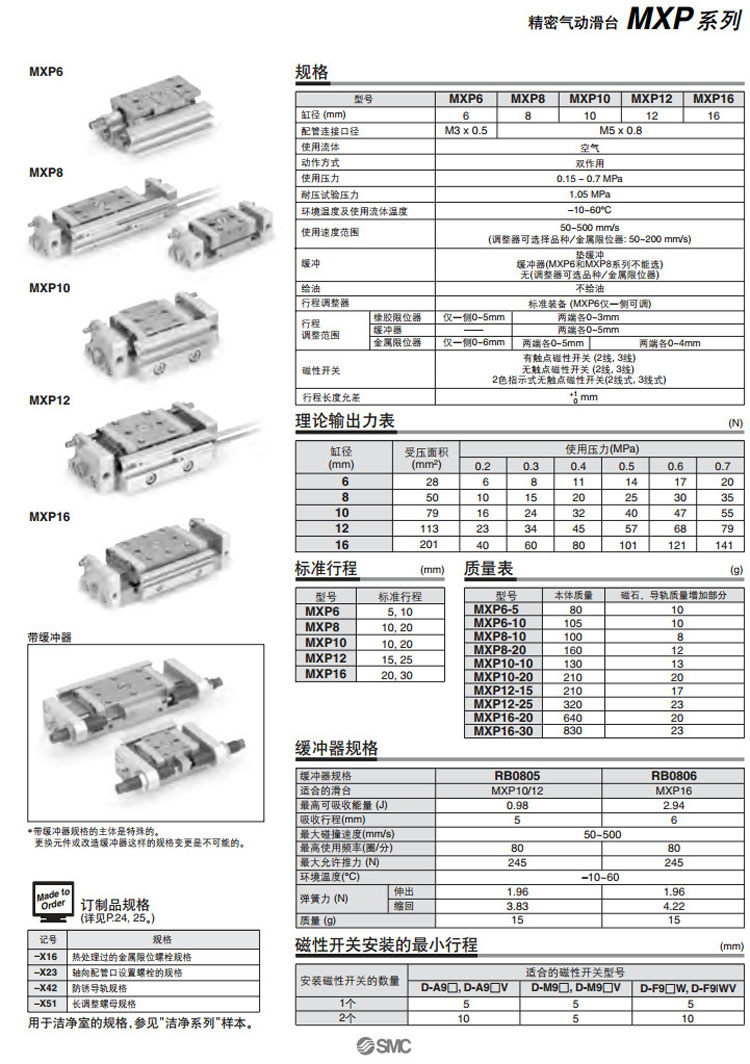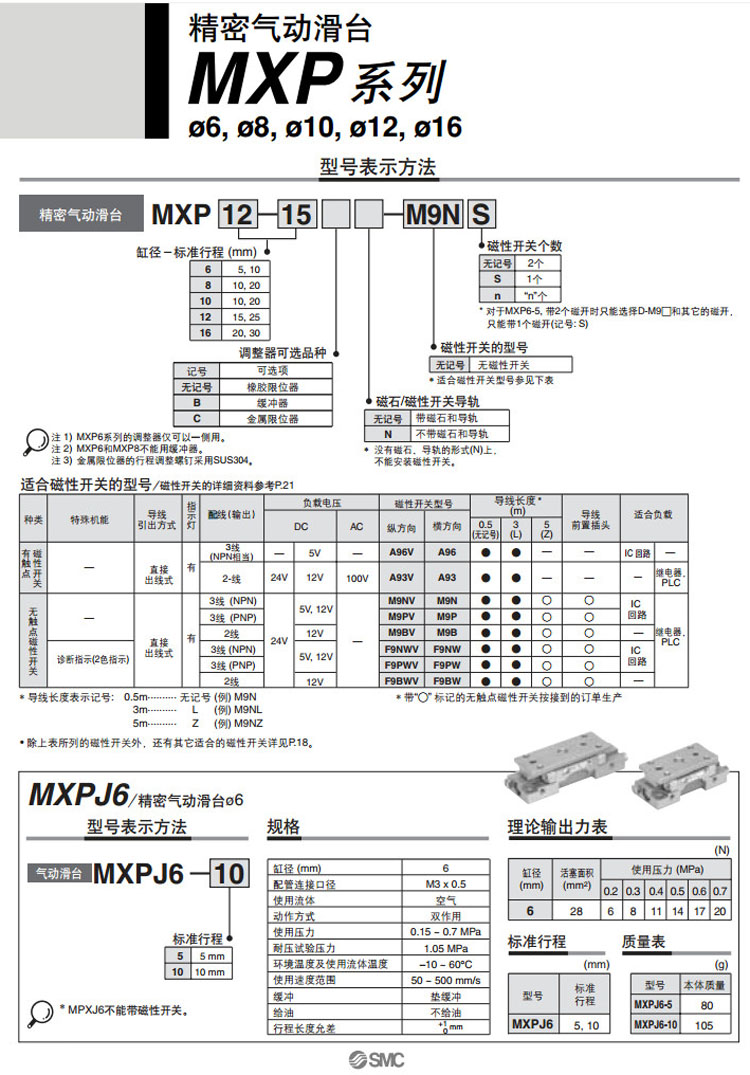 MXP6-5,MXP8-10,MXP10-10,MXP12-15,MXP16-20,MXPJ6-5,MXP6-10,MXP8-20,SMC精密氣動(dòng)滑臺(tái)氣缸