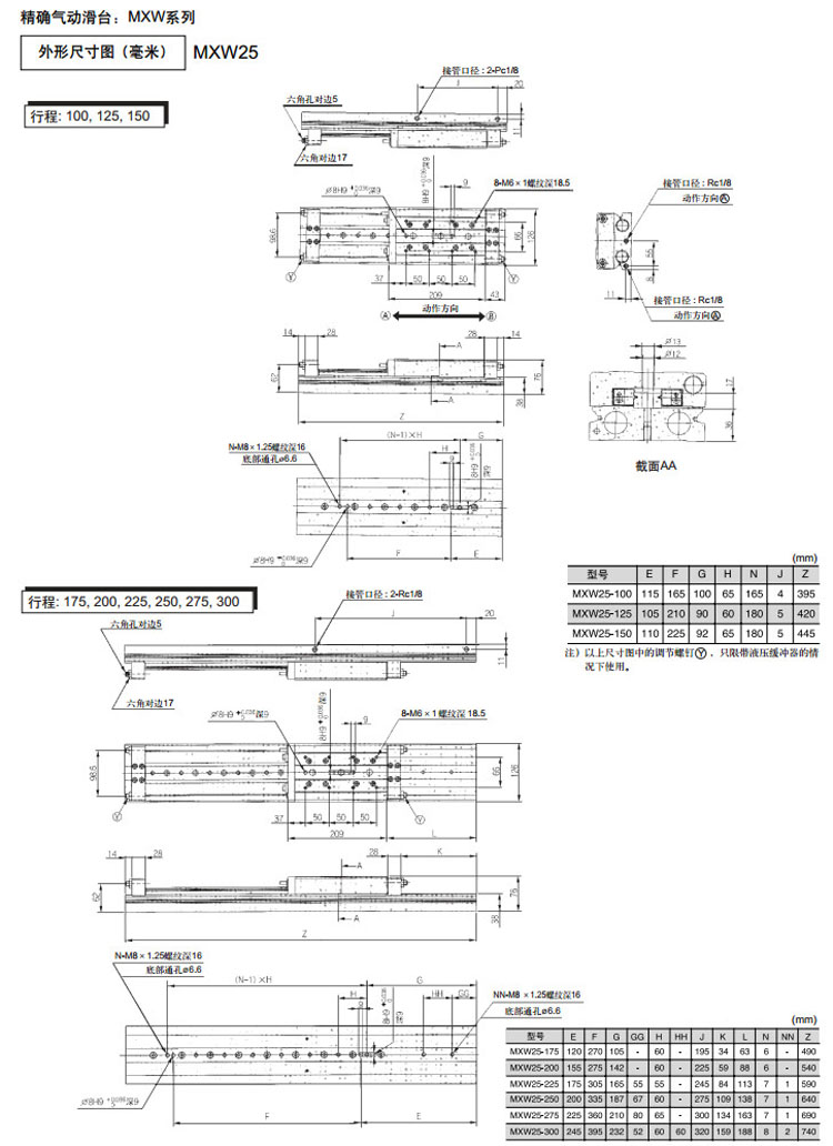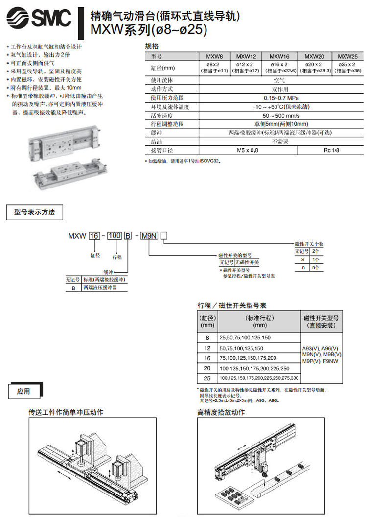 MXW16-200,MXW20-125,MXW20-150,MXW20-175,MXW20-200,MXW20-225,MXW20-250,MXW25-125,MXW25-150,