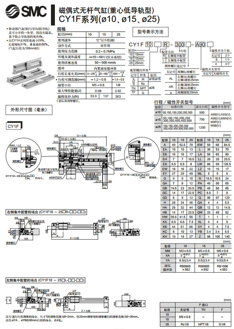 CY1F10R-50,CY1F15R-50,CY1F25R-50,CY1F10L-50,CY1F15L-50,CY1F25L-50,SMC磁偶式無(wú)桿氣缸