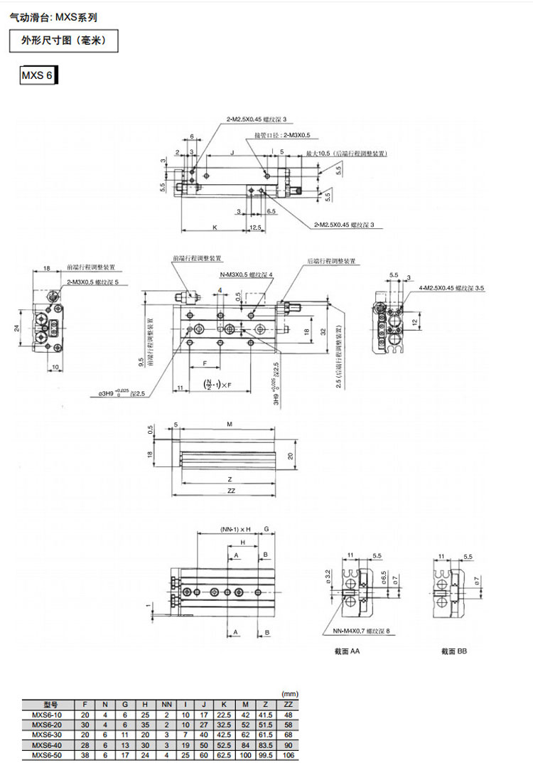 MXS6-10,MXS8-10,MXS12-10,MXS16-10,MXS20-10,MXS25-10,MXS6-20,MXS8-20,MXS12-20,SMC氣動滑臺氣缸
