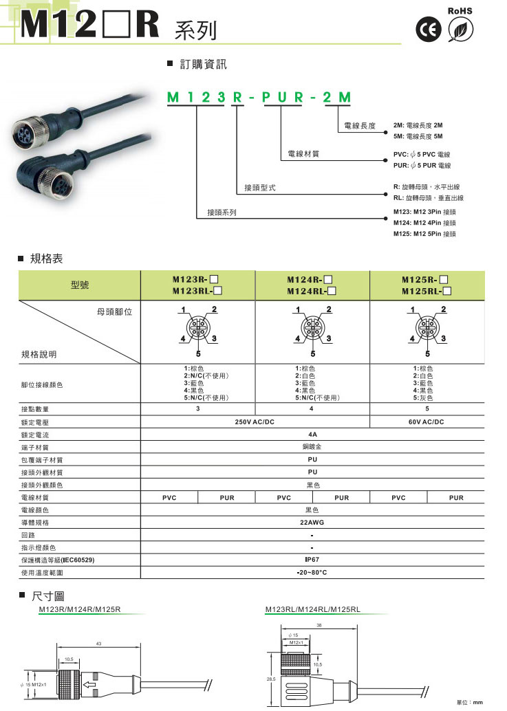 M123R,M123RL,M124R,M124RL,M125R,M125RL,M123R-PUR-2M,M124RL-PUR-2M,M125R-PUR-2M,KIDA導(dǎo)線接頭 |