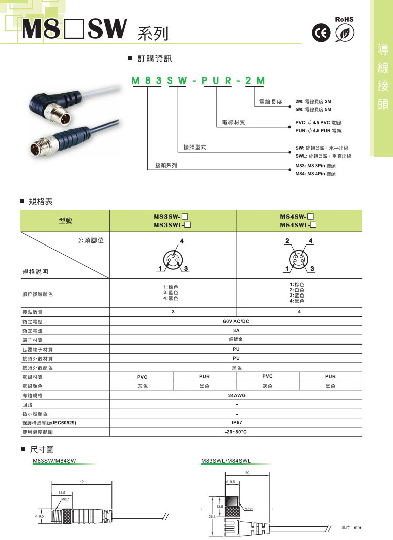M83SW-PUR,M83SW-PVC,M84SW-PUR,M84SW-PVC,M83SWL-PUR,M83SWL-PVC,M84SWL-PUR,M84SWL-PVC,KIDA導(dǎo)線接頭 |
