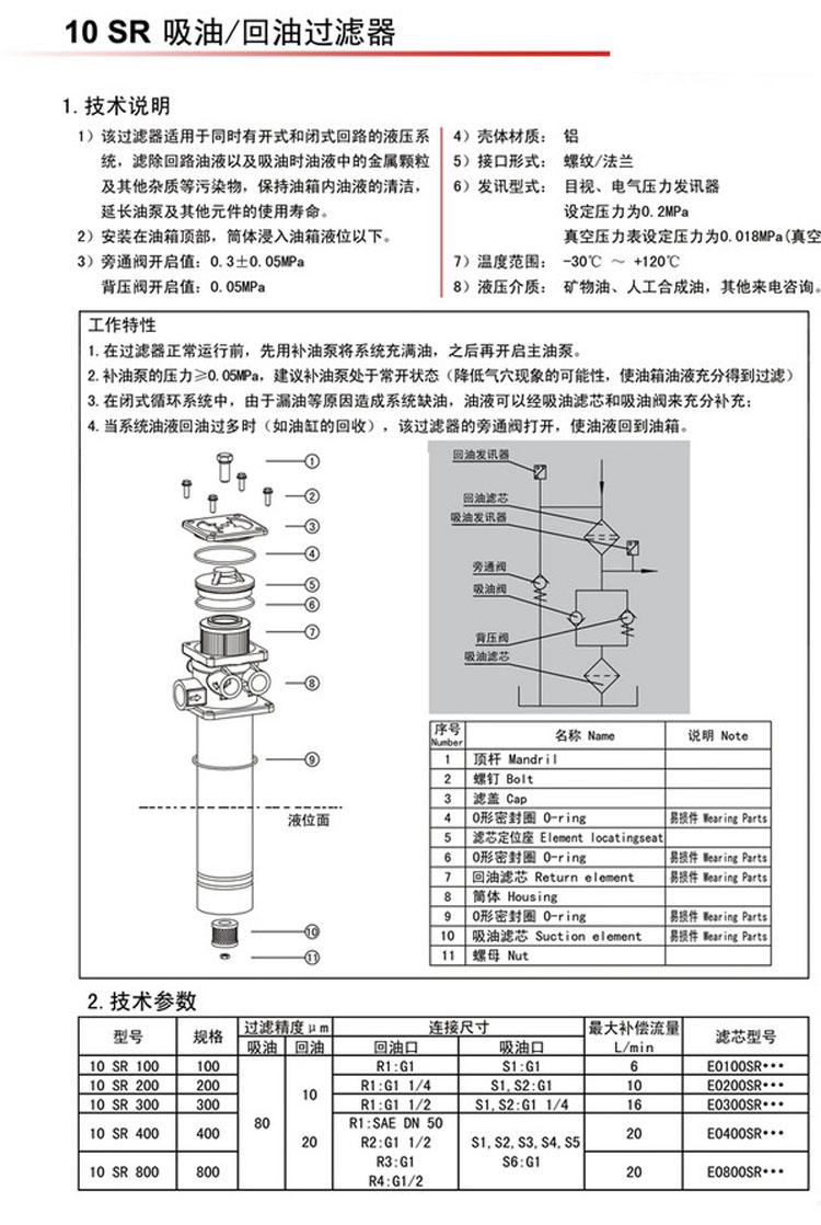 10SR100KN10,10SR100KN20,10SR200KN10,10SR200KN20,10SR300KN20,10SR400KN10,10SR800KN20,回油過濾器