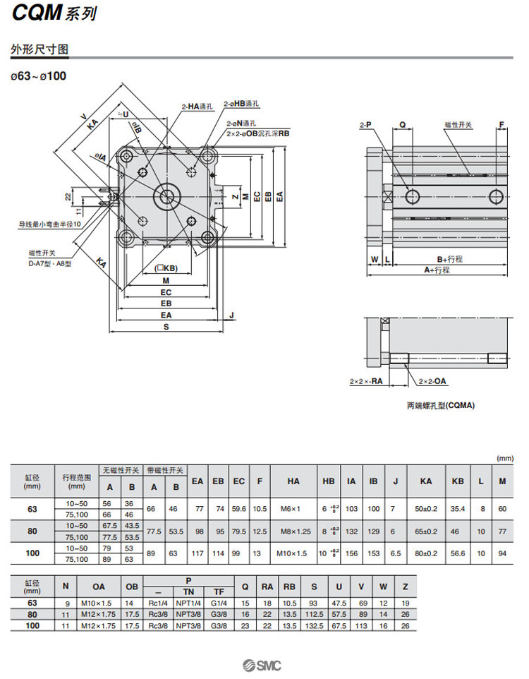 CDQMB12,CDQMB16,CDQMB20,CDQMB25,CDQMB32,CDQMB40,CDQMB50,CDQMB63,CDQMB80,CDQMB100,CDQMB12-5,SMC薄型氣缸