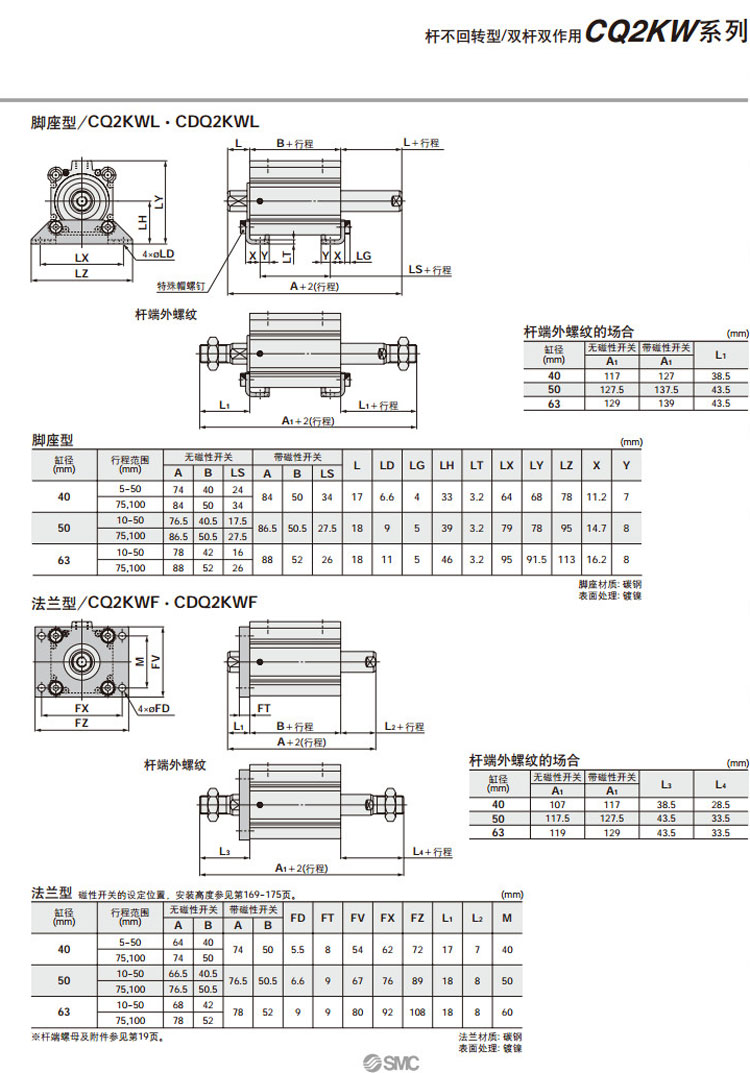 CDQ2KWD63-45D,CDQ2KWD63-50D,CDQ2KWD63-75D,CDQ2KWD63-100D,CDQ2KWD63-40D,SMC桿不回轉(zhuǎn)型氣缸