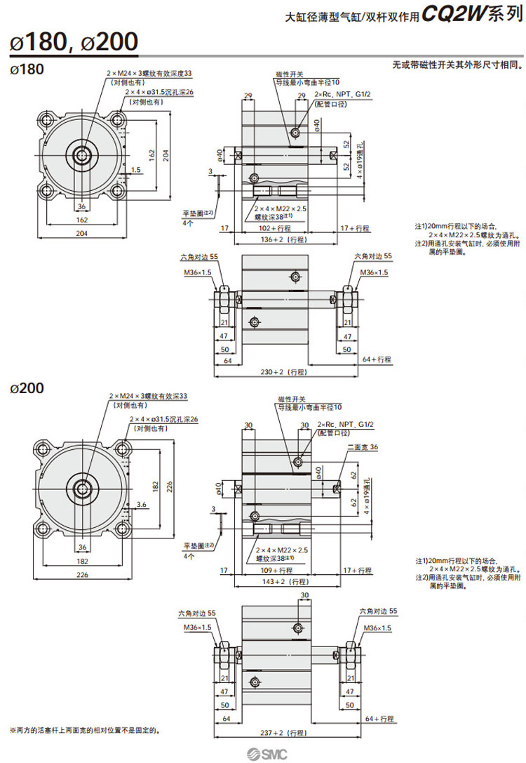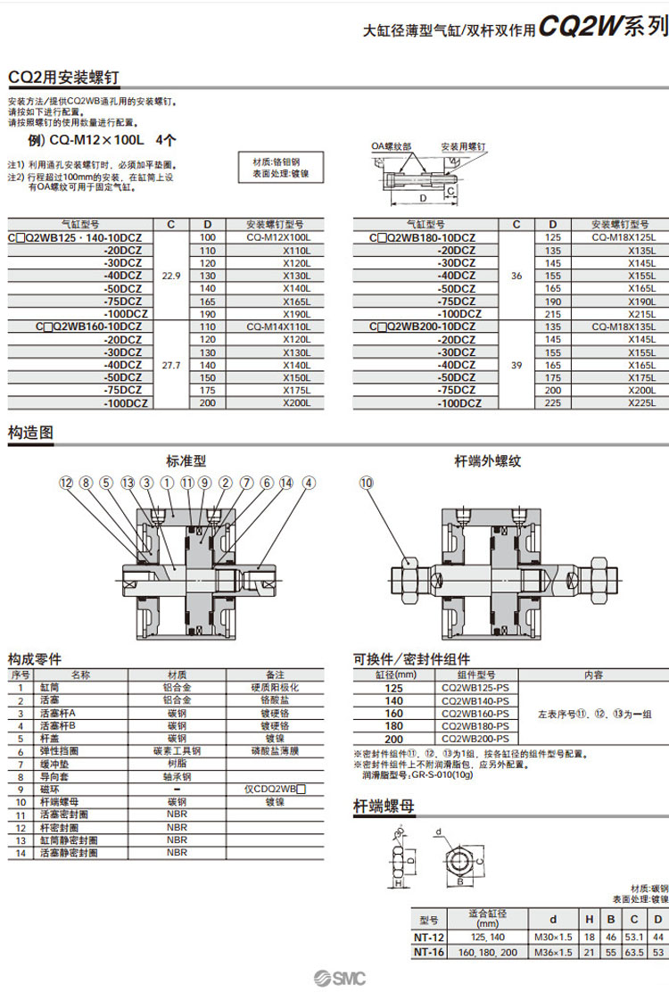 CQ2WB125,CQ2WB140,CQ2WB160,CQ2WB180,CQ2WB200,CDQ2WB125,CDQ2WB140,CDQ2WB160,CDQ2WB180,CDQ2WB200,SMC薄型氣缸
