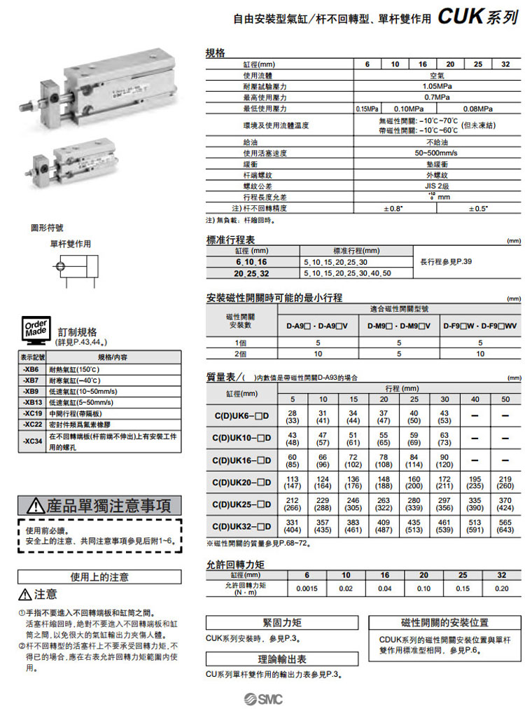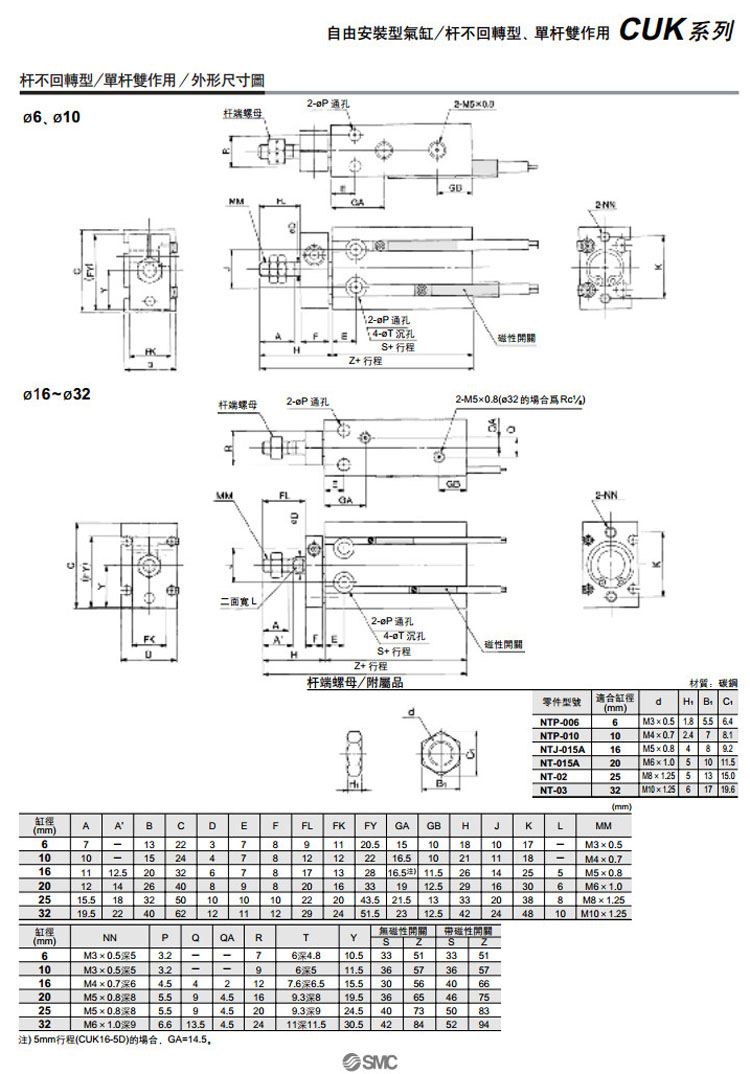 CUK6-5,CUK10-5,CUK16-5,CUK20-5,CUK25-5,CUK32-5,CDUK6-5,CDUK10-5,CDUK16-5,CDUK20-5,CDUK25-5,CDUK32-5,SMC自由安裝型氣缸